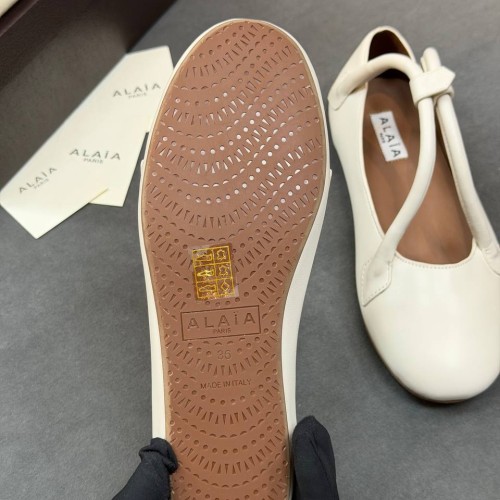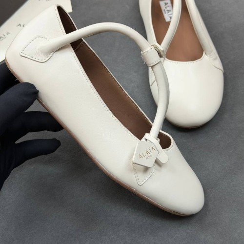 Белые балетки Alaia из натуральной кожи. Выразительность балеток повышают ремешки, застегивающиеся на кнопку. Они не только выполняют декоративную функцию, но и надежно фиксируют стопу. Лаконичная модель подойдет как под образ с объемными джинсами, так и под сочетания с элегантными платьями. В нашем интернет-магазине вы можете купить копии балеток с доставкой по Москве и по всей России.