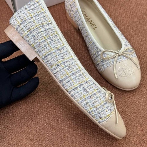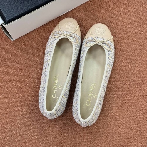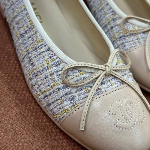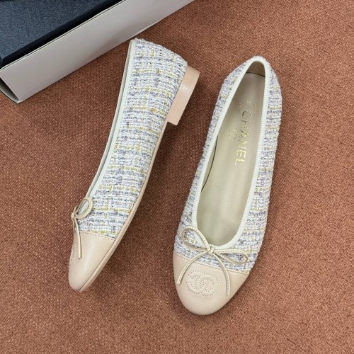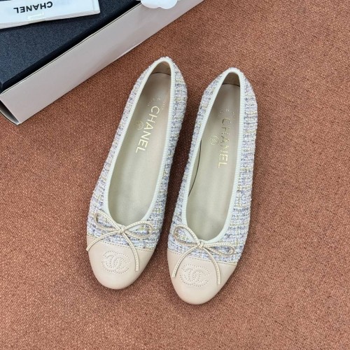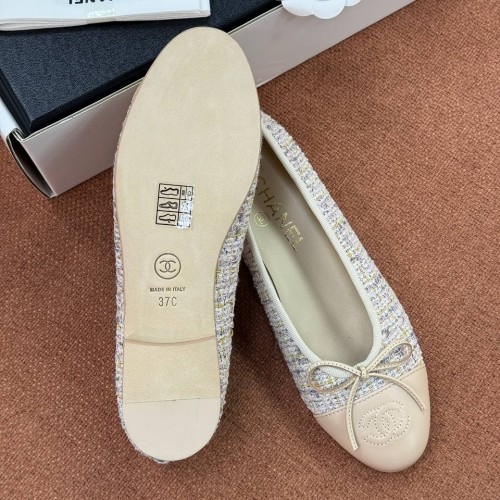Бежевые женские балетки Chanel из текстиля со стелькой из натуральной кожи. Идеальный баланс стиля и комфорта. Закругленная черная носочная часть придает модели геометричность, при этом женственность балеток усиливает трендовый элемент - бантик. В нашем интернет-магазине вы можете купить копии балеток с доставкой по Москве и по всей России.
