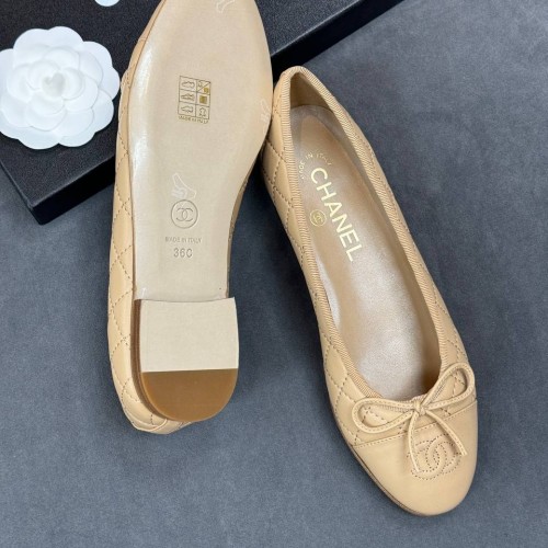 Женские бежевые балетки Chanel из натуральной кожи. Сочетание стиля и актуального дизайна - балетки станут элегантным дополнением к деловому или вечернему наряду. Удобная колодка гарантируют легкую походку и максимальный комфорт. В нашем интернет-магазине вы можете купить копии балеток с доставкой по Москве и по всей России.