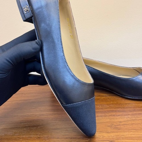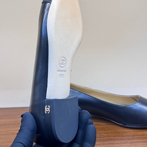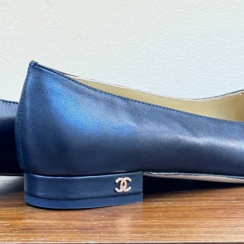 Черные женские балетки Chanel из натуральной кожи. Балетки имеют устойчивый каблук, высотой 2 см и текстильный заостренный носок. Стильная пара идеально дополнит расслабленные сочетания для летних прогулок. В нашем интернет-магазине вы можете купить копии балеток с доставкой по Москве и по всей России.