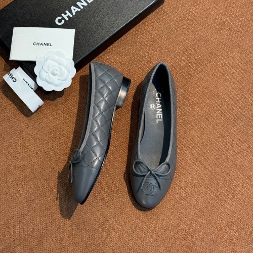 Серые женские балетки Chanel из натуральной кожи. Обувь, не теряющая своей актуальности. Современные девушки вполне могут позволить себе не носить каблук, выбирая комфорт и лаконичность вместо нарочитой женственности. В нашем интернет-магазине вы можете купить копии балеток с доставкой по Москве и по всей России.