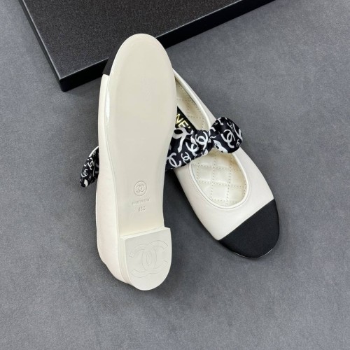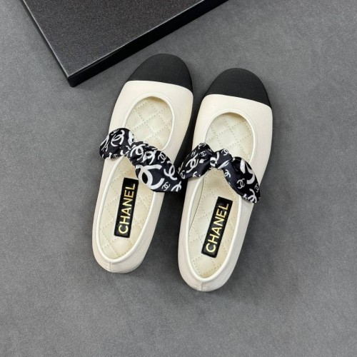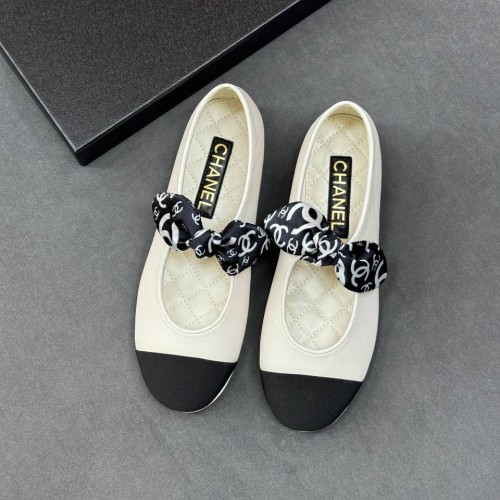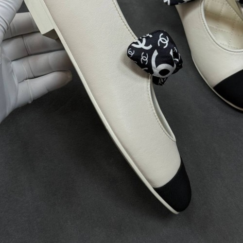 Белые женские балетки Chanel с черным носом из натуральной кожи. Балетки, которые дополнят самые эффектные образы. Модель дополнена круглой носочной частью и декоративным ремешком, завязанным на бантик. В нашем интернет-магазине вы можете купить копии балеток с доставкой по Москве и по всей России.