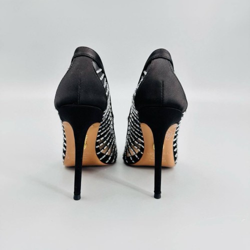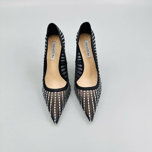 Черные туфли Aquazzura из атласа со стелькой из натуральной кожи. Элегантная пара обуви на устойчивом каблуке, высотой 11 см сделает любой образ изысканным, а также придаст вашей походке лёгкость и уверенность. Невероятные мерцающие стразы в дизайне босоножек придают паре яркости. В нашем интернет-магазине вы можете купить копии туфель с доставкой по Москве и по всей России.