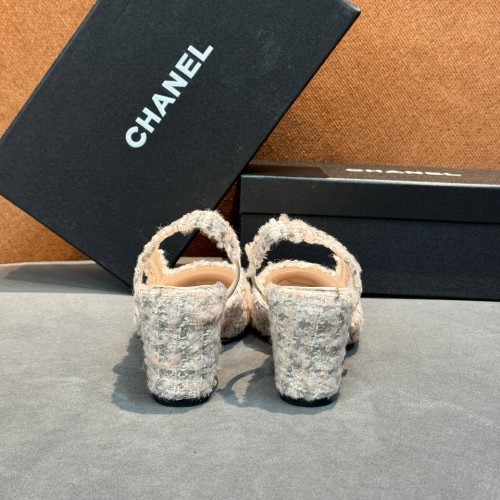Бежевые женские босоножки Chanel из ткани со стелькой из натуральной кожи. Босоножки, которые прямо сейчас притягивают больше всего внимания. Модель дополнена круглой закрытой носочной частью и устойчивым каблуком, высотой 6 см. В нашем интернет-магазине вы можете купить копии босоножек с доставкой по Москве и по всей России.