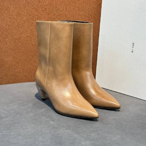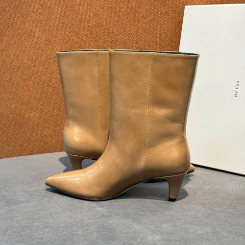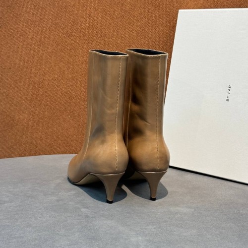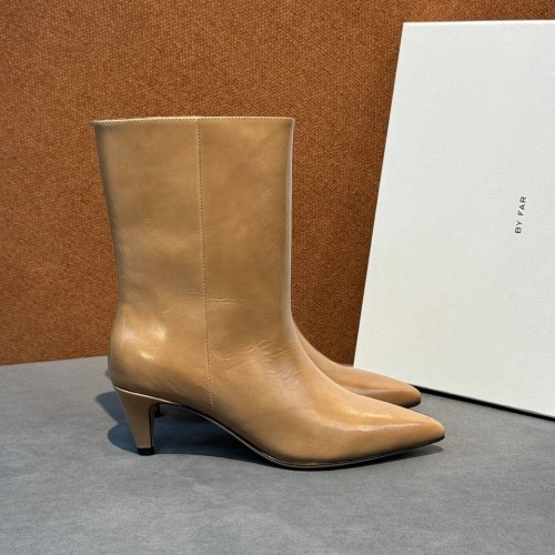 Бежевые женские ботильоны By Far из натуральной кожи. Ботильоны из новой коллекции сочетают в себе комфорт и элегантность. Устойчивый каблук, высотой 6 см и невысокий подъем отвечают за устойчивость и удобство, а заостренная носочная часть и приталенный силуэт - за актуальность и универсальность. В нашем интернет-магазине вы можете купить копии ботильон с доставкой по Москве и по всей России.