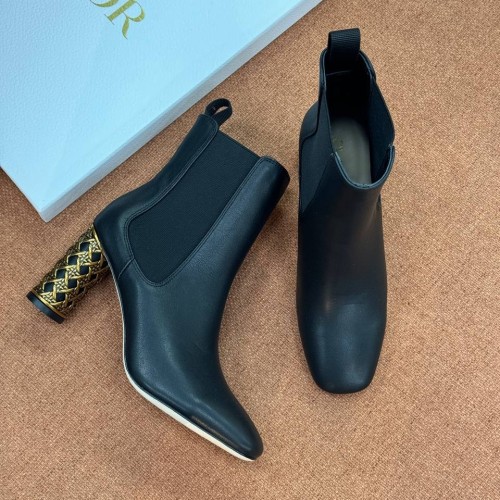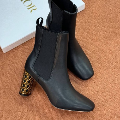 Черные женские ботильоны Cristian Dior из натуральной кожи. Идеальная пара для элегантной повседневности. Модель на устойчивом каблуке, высотой 8 см с золотистым декором станут идеальной базой для утонченного повседневного стиля. В нашем интернет-магазине вы можете купить копии ботильон с доставкой по Москве и по всей России.