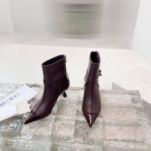 Бордовые женские ботильоны Jimmy Сhoo из натуральной кожи. Ботильоны облегающего силуэта - это базовая модель для создания элегантных сочетаний. Для уверенной походки ботильоны дополнены небольшим каблуком. В нашем интернет-магазине вы можете купить копии ботильон с доставкой по Москве и по всей России.