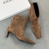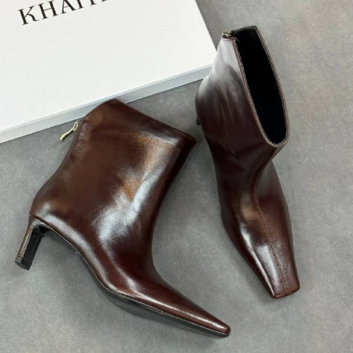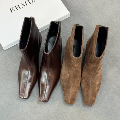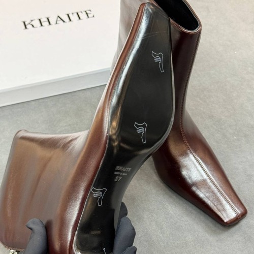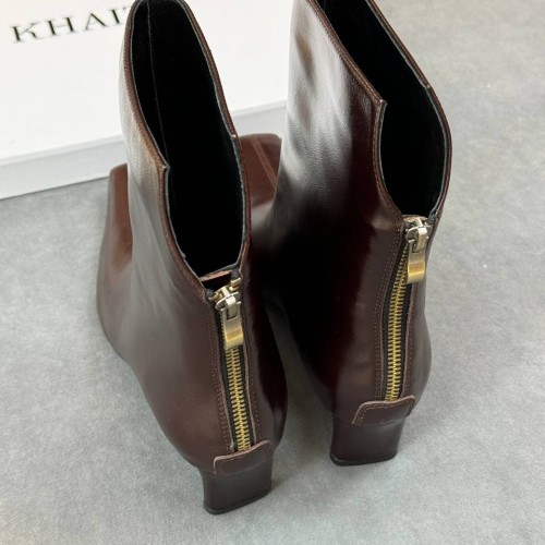 Элегантные женские ботильоны Khaite коричневого оттенка из натуральной кожи. Эта пара сделает акцент на ногах. Удобная молния сзади не только фиксирует стопу, но и придает паре неповторимую выразительность. В нашем интернет-магазине вы можете купить копии ботильон с доставкой по Москве и по всей России.
