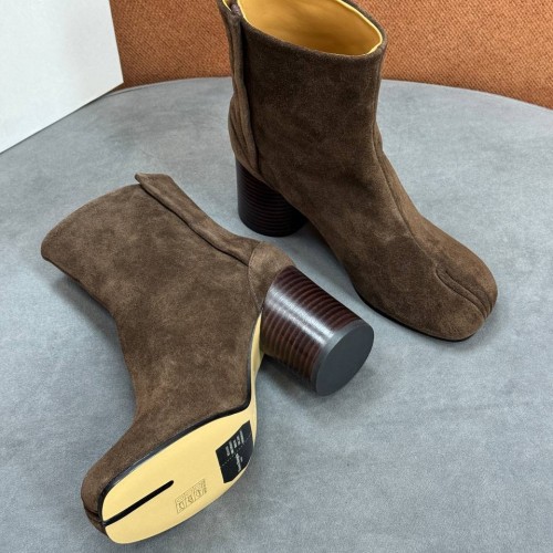 Женские коричневые ботильоны Maison Margiela из натуральной замши. Удобные ботильоны в модном цвете - важная часть повседневного гардероба. Модель с бархатистой текстурой, которая подчёркивает насыщенность кофейного оттенка. Внутренняя отделка сохраняет тепло, а подошва предотвращает скольжение. В нашем интернет-магазине вы можете купить копии ботильон с доставкой по Москве и по всей России.
