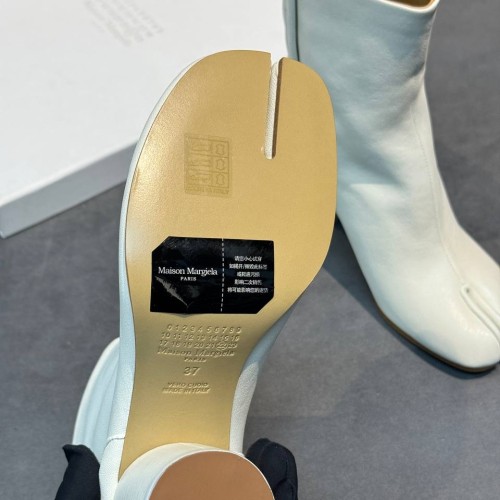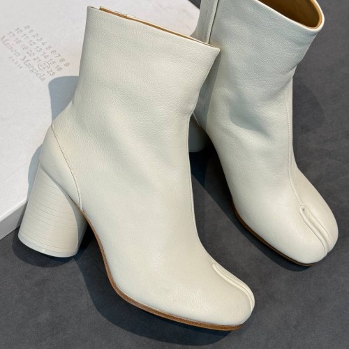 Яркие белые ботильоны Maison Margiela из натуральной кожи. Ботильоны идеально дополнят сдержанные деловые образы и расслабленную повседневность. Эффектную пару отличает облегающее голенище, округлая раздвоенная носочная часть и выразительный, но устойчивый каблук. В нашем интернет-магазине вы можете купить копии ботильон с доставкой по Москве и по всей России.