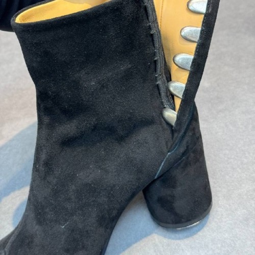 Черные ботильоны Maison Margiela из натуральной замши. В переменчивую погоду межсезонья ваш гардероб заслуживает модели в идеальном балансе стиля и комфорта. Устойчивый каблук, а также подкладка и стелька позволяют чувствовать себя комфортно на протяжении всего дня. В нашем интернет-магазине вы можете купить копии ботильон с доставкой по Москве и по всей России.