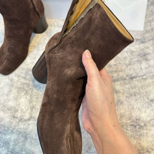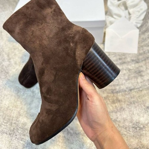 Культовые ботильоны Maison Margiela шоколадного оттенка из натуральной замши. Раздвоенная носочная часть и устойчивый каблук, высотой 8 см делают пару яркой и женственной одновременно. Эта модель легко станет ключевой деталью даже самого лаконичного образа, добавив индивидуальности. В нашем интернет-магазине вы можете купить копии ботильон с доставкой по Москве и по всей России.