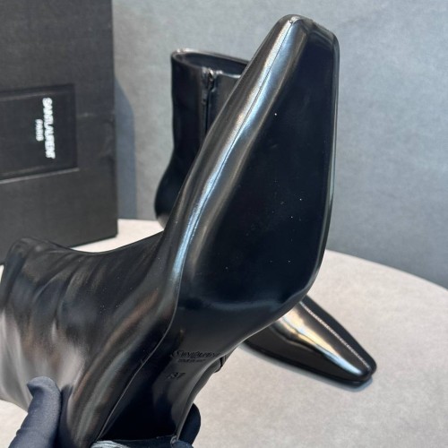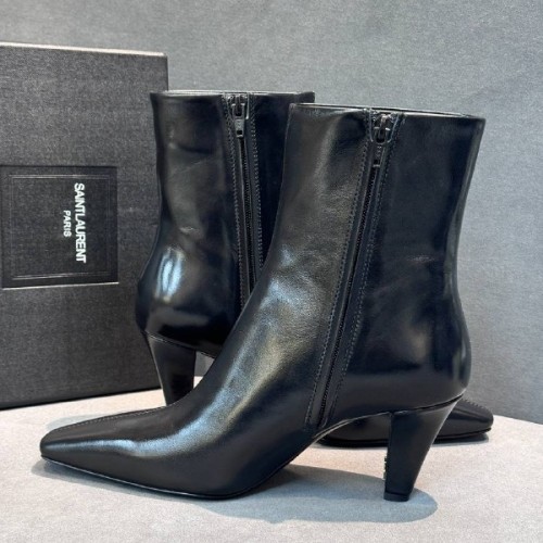 Черные женские ботильоны Saint Laurent из натуральной кожи. Модель, которая вдохновит вас на создание женственных образов. Ботильоны дополнены трендовым каблуком, высотой 7 см, который обеспечивает легкую походку и не уступает в изящности классическим шпилькам. В нашем интернет-магазине вы можете купить копии ботильон с доставкой по Москве и по всей России.
