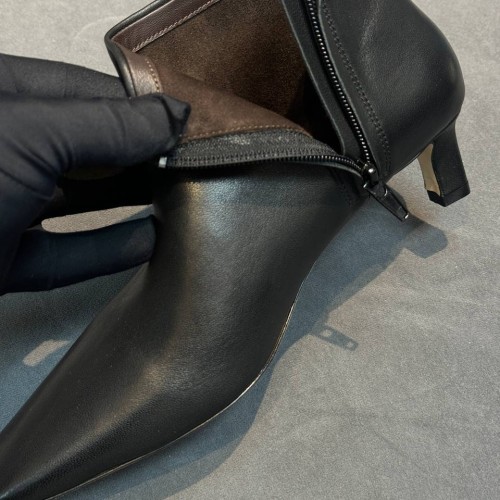 Черные женские ботильоны The Row из натуральной кожи. В переменчивую погоду межсезонья ваш гардероб заслуживает модели в идеальном балансе стиля и комфорта. Заостренная носочная часть и каблук, высотой 5 см - элементы дизайна, усиливающие элегантность пары. В нашем интернет-магазине вы можете купить копии ботильон с доставкой по Москве и по всей России.