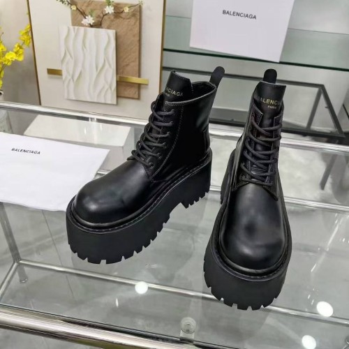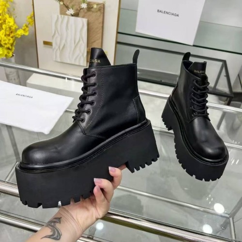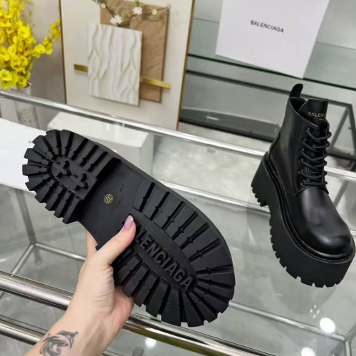 Черные женские ботинки Balenciaga из натуральной кожи. Ботинки на шнуровке - самая функциональная модель обуви. Пара дополнена шнуровкой и высокой платформой с выраженным протектором. В нашем интернет-магазине вы можете купить копии ботинок с доставкой по Москве и по всей России.