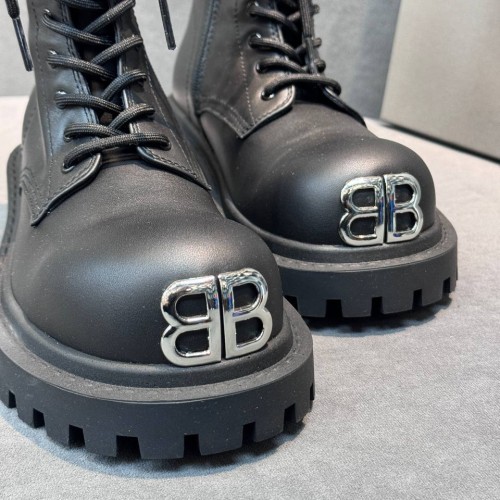 Черные ботинки от Balenciaga из натуральной кожи. Модель дополнили шнуровкой, которая обеспечивает надежную фиксацию и комфортную посадку по ноге. Главный акцент на себя берет широкая утолщенная подошва из облегченной резины, которая отвечает за амортизацию и комфорт во время движения. В нашем интернет-магазине вы можете купить копии ботинок с доставкой по Москве и по всей России.