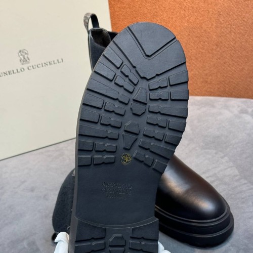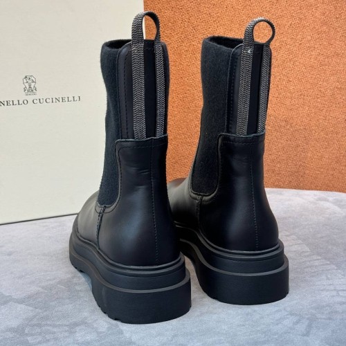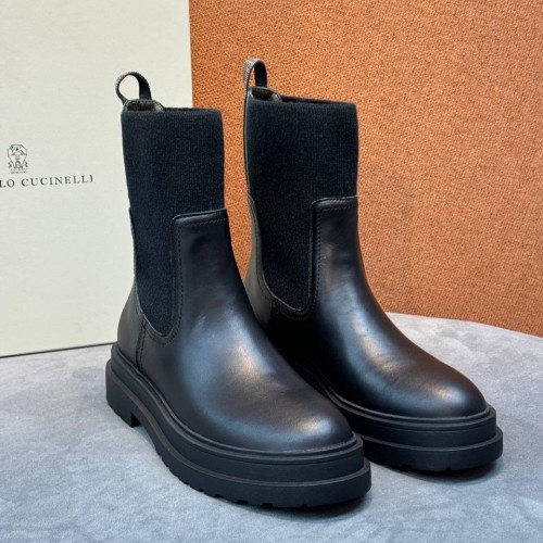 Черные ботинки Brunello Cucinelli из натуральной кожи. Сочетание трендового лаконичного дизайна и современного прочтения. Акценты натуральной кожи и шерстяных вставок вносят в дизайн деликатный контраст. В нашем интернет-магазине вы можете купить копии ботинок с доставкой по Москве и по всей России.