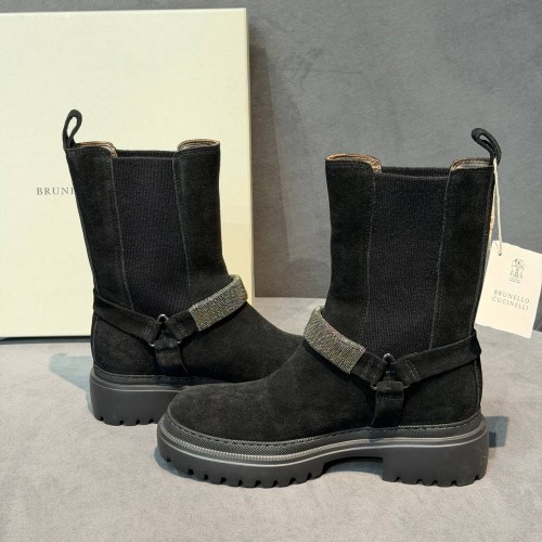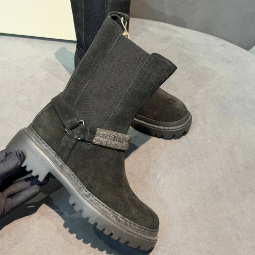 Черные ботинки Brunello Cucinelli из натуральной замши. Челси из новой коллекции украшены культовой монилью. При этом пара остается универсальной за счет лаконичного дизайна и классической палитры. В нашем интернет-магазине вы можете купить копии ботинок с доставкой по Москве и по всей России.
