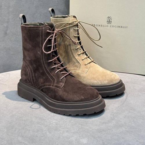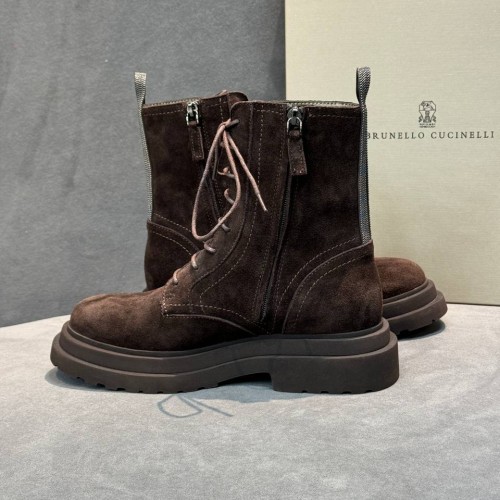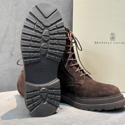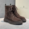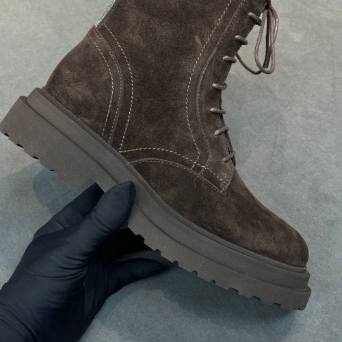 Коричневые ботинки Brunello Cucinelli из натуральной замши. Выразительная фактура и лаконичный дизайн делают пару универсальной для гардероба. Стильный силуэт дополняют шнуровка и молния сбоку. В нашем интернет-магазине вы можете купить копии ботинок с доставкой по Москве и по всей России.