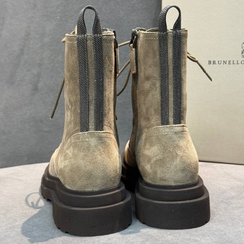 Бежевые ботинки Brunello Cucinelli из натуральной замши. Стильный силуэт дополняют шнуровка и молния сбоку. Подошва с протекторами помогает сохранять уверенный шаг даже в зимних условиях. В нашем интернет-магазине вы можете купить копии ботинок с доставкой по Москве и по всей России.