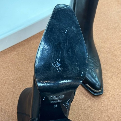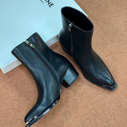 Черные женские ботинки Celine из натуральной кожи. Казаки уже успели стать базой современного гардероба. Продуманная посадка, устойчивый скошенный каблук и мягкая кожаная стелька обеспечивают комфорт на протяжении всего дня. В нашем интернет-магазине вы можете купить копии ботинок с доставкой по Москве и по всей России.