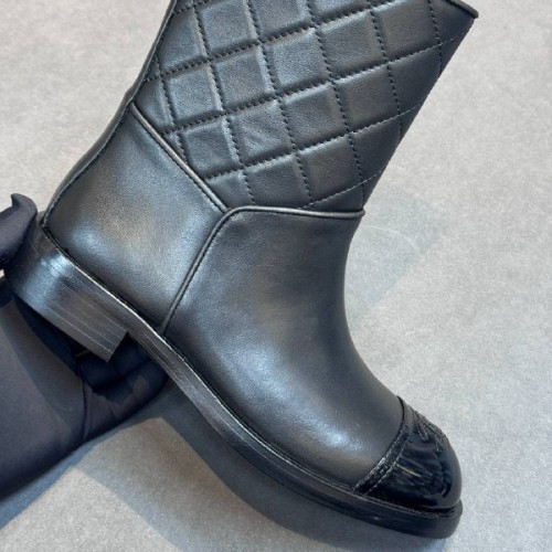 Черные ботинки Chanel из натуральной кожи с носком из лакированной кожи. Незаменимый элемент гардероба в прохладный сезон. Модель открывает простор для модных экспериментов: стилизуйте ее в расслабленных образах с любимыми джинсами или создавайте контрасты с летящими тканями. В нашем интернет-магазине вы можете купить копии ботинок с доставкой по Москве и по всей России.