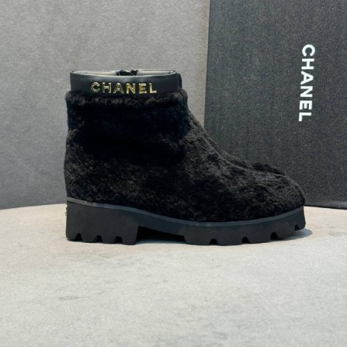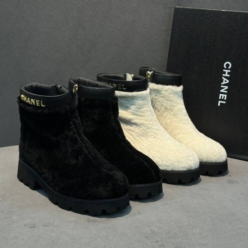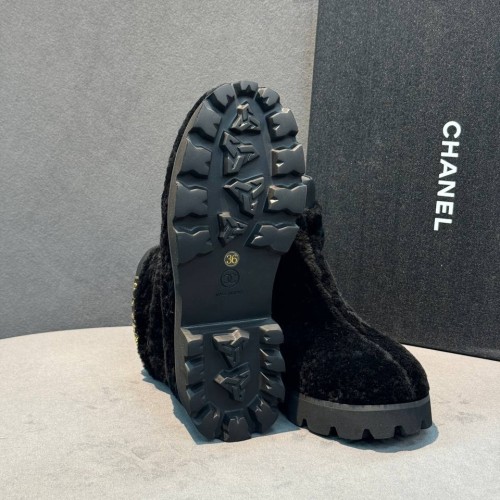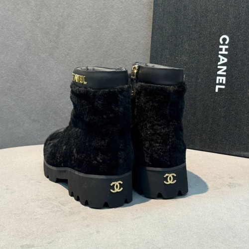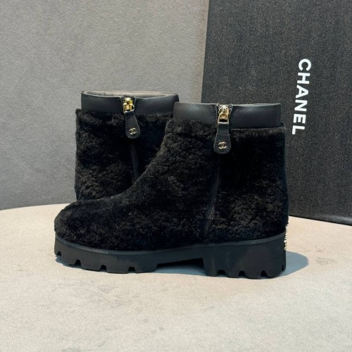 Черные женские ботинки Chanel из натурального меха и натуральной кожи. Элегантные ботинки внесут в образ завершающий штрих. Удобная молния сбоку позволяет легко снимать и одевать стильную обувь. В нашем интернет-магазине вы можете купить копии ботинок с доставкой по Москве и по всей России.