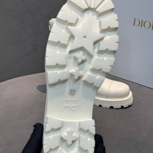Белые женские ботинки Christian Dior из натуральной кожи. Пример того, как хорошо знакомая классика стала ярким трендом. Секрет успеха пары в том, что ее легко можно вписать в большинство повседневных образов для прохладного сезона. В нашем интернет-магазине вы можете купить копии ботинок с доставкой по Москве и по всей России.