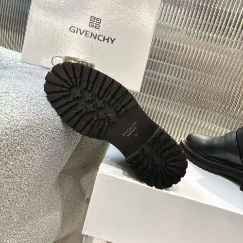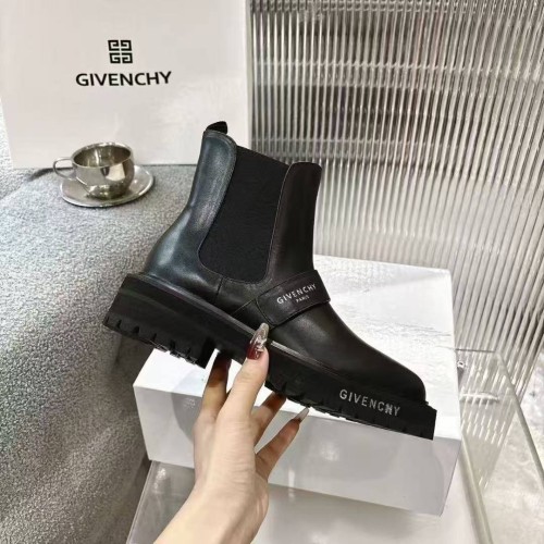 Черные ботинки Givenchy из натуральной кожи. Лаконичный дизайн, насыщенный черный оттенок и вневременной силуэт делают эту модель универсальной. За комфорт отвечает мягкая стелька, резиновые вставки по бокам и легкая подошва. Совокупность деталей делает ботинки подходящим выбором для актуальных повседневных образов. В нашем интернет-магазине вы можете купить копии ботинок с доставкой по Москве и по всей России.