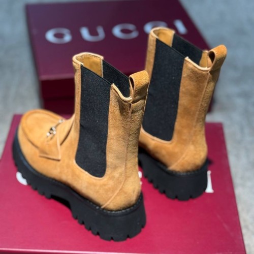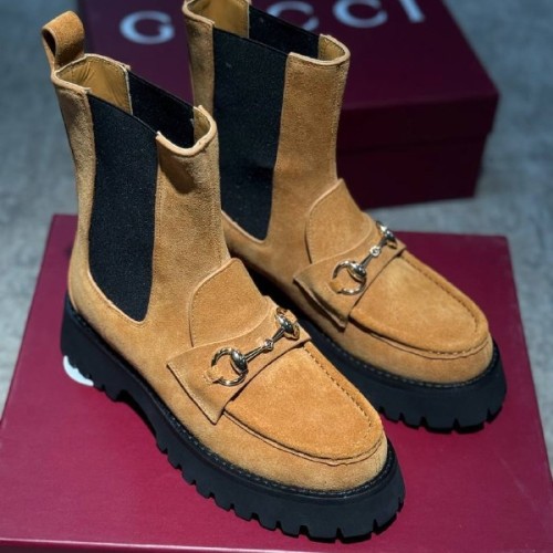 Оранжевые ботинки Gucci с золотой пряжкой из натуральной замши. Выразительная фактура и лаконичный дизайн делают пару универсальной для гардероба. Устойчивая подошва, а также подкладка и стелька позволяют чувствовать себя комфортно на протяжении всего дня. В нашем интернет-магазине вы можете купить копии ботинок с доставкой по Москве и по всей России.