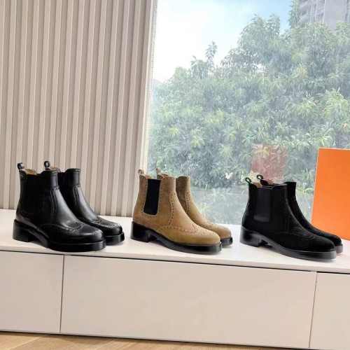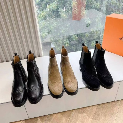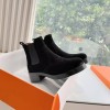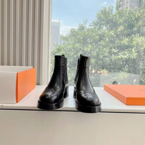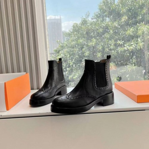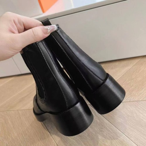 Черные женские ботинки Hermes из натуральной кожи. Универсальная пара, в которой будет комфортно в холодную переменчивую погоду. Дополнительное удобство модели придают устойчивая подошва, петля на задней поверхности и резиновые вставки по бокам. В нашем интернет-магазине вы можете купить копии ботинок с доставкой по Москве и по всей России.