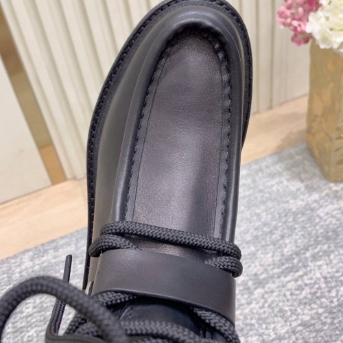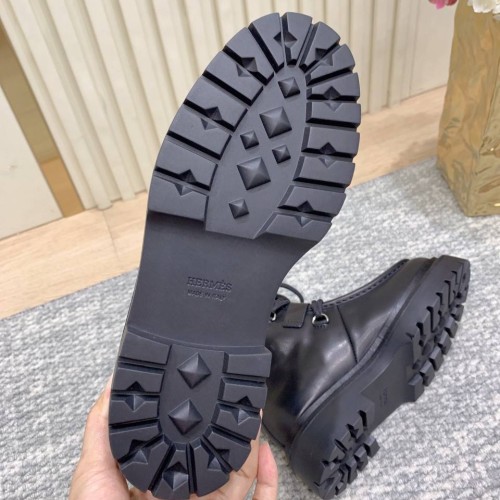 Черные женские ботинки Hermes из натуральной кожи. Ботинки на шнуровке вновь актуальны этой зимой. Легкая резиновая подошва обеспечивает устойчивость и удобство во время ходьбы, а шнуровка надежно фиксирует обувь на ноге. В нашем интернет-магазине вы можете купить копии ботинок с доставкой по Москве и по всей России.