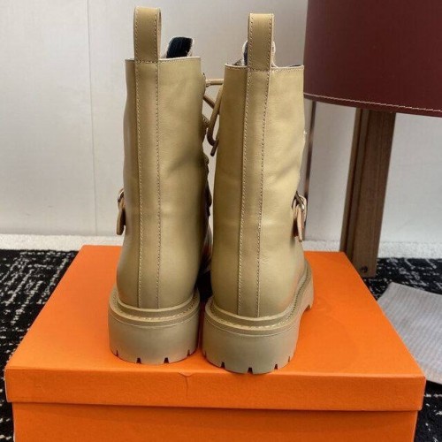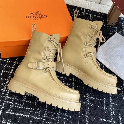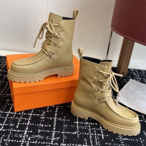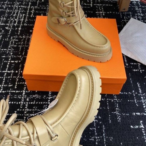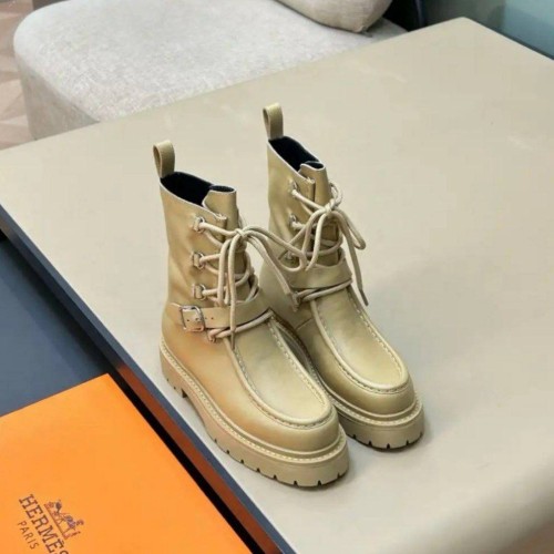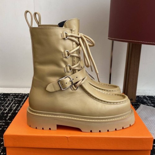 Кремовые женские ботинки Hermes из натуральной кожи. Высокие ботинки на шнуровке могут стать акцентным элементом ваших образов. Модель из новой коллекции дополнена стилеобразующими элементами: ремешками на голенище. В нашем интернет-магазине вы можете купить копии ботинок с доставкой по Москве и по всей России.