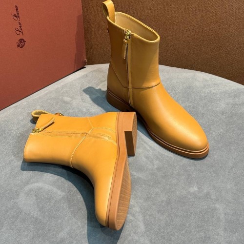 Желтые женские ботинки Loro Piana из натуральной кожи. Ботинки - незаменимый элемент гардероба в прохладный сезон. Объемная подошва - трендовая деталь силуэта, а также залог уверенной походки. Пара надежно фиксируется на ноге благодаря молнии. В нашем интернет-магазине вы можете купить копии ботинок с доставкой по Москве и по всей России.