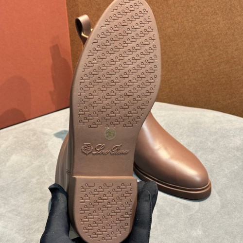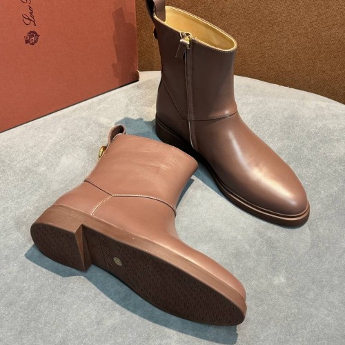 Женские ботинки Loro Piana коричневого оттенка из натуральной кожи. Компромисс между комфортом и стилем в холодную погоду найден, и это ботинки из новой коллекции. Модель с молнией сбоку и устойчивой подошвой идеально завершит образ. В нашем интернет-магазине вы можете купить копии ботинок с доставкой по Москве и по всей России.