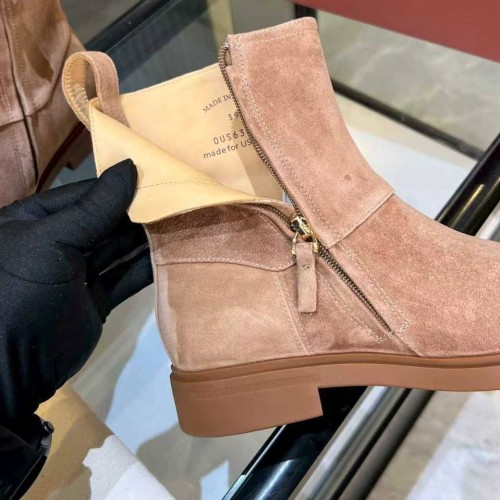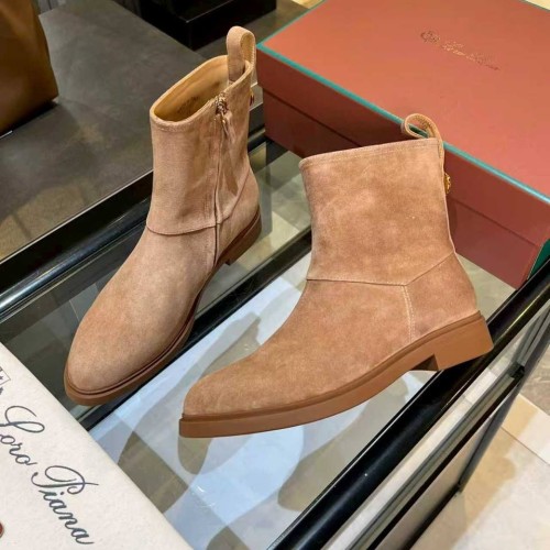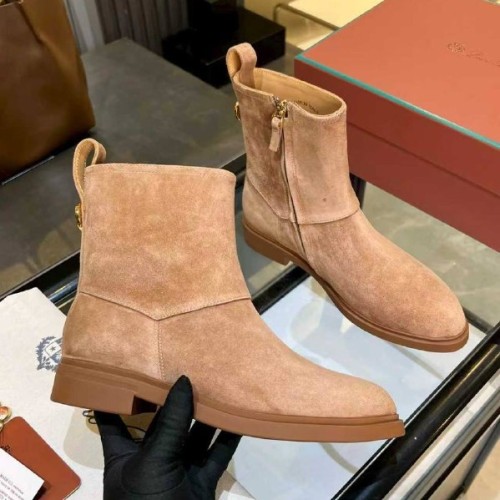 Женские ботинки Loro Piana нюдового оттенка из натуральной замши. В переменчивую погоду межсезонья ваш гардероб заслуживает модели в идеальном балансе стиля и комфорта. Ботинки из новой коллекции - как раз такое изделие. Устойчивый каблук, надежная молния и подошва обеспечивают удобство, а современный дизайн позволяет сделать модель универсальным дополнением для большинства повседневных образов. В нашем интернет-магазине вы можете купить копии ботинок с доставкой по Москве и по всей России.
