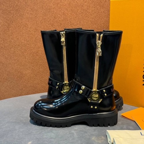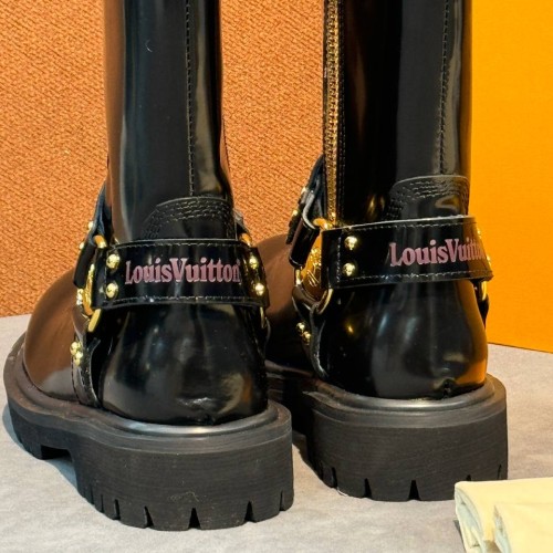 Черные женские ботинки Louis Vuitton & Timberland из натуральной матовой кожи. Молния в районе задней части изделия надежно фиксирует голенище и позволяет легко снимать и надевать ботинки. Стильные ботинки на нескользящей подошве легко впишется в любой гардероб и станут дополнением повседневных сочетаний. В нашем интернет-магазине вы можете купить копии ботинок с доставкой по Москве и по всей России.