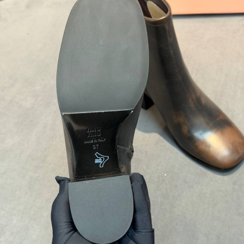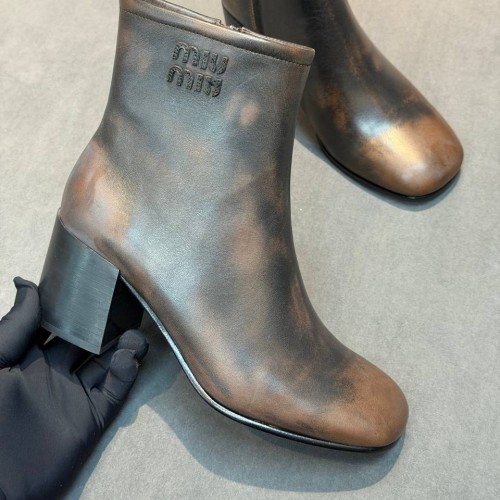 Коричневые женские ботинки Miu miu из натуральной кожи. Стильная отделка кожи подчеркивает элегантность модели в стиле милитари. Ультрамодный дизайн завершают молния и устойчивый каблук. В нашем интернет-магазине вы можете купить копии ботинок с доставкой по Москве и по всей России.