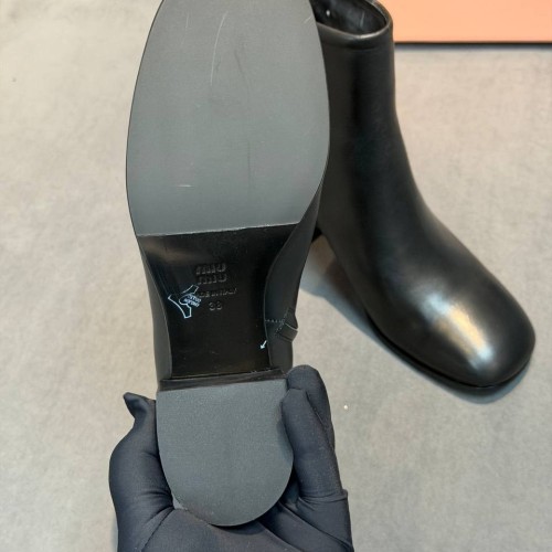 Черные женские ботинки Miu miu из натуральной кожи. Сочетание стиля и актуального дизайна - ботинки станут элегантным дополнением к деловому стилю или вечернему наряду. Удобная колодка и каблук гарантируют легкую походку и максимальный комфорт. В нашем интернет-магазине вы можете купить копии ботинок с доставкой по Москве и по всей России.