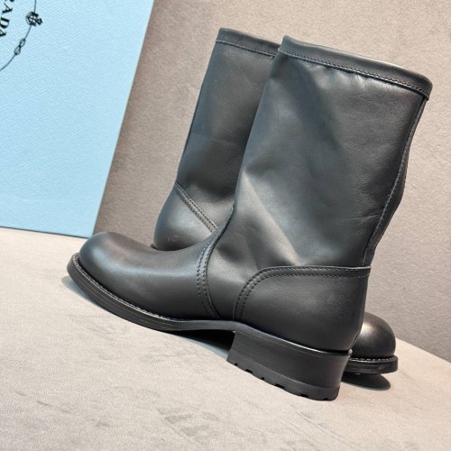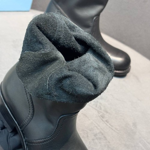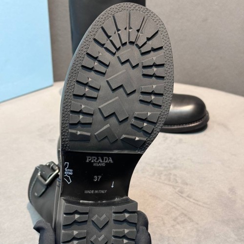 Черные женские ботинки Prada из натуральной кожи. Классика, в которой всегда можно быть уверенной. Пара дополнена высокой подошвой с выраженным протектором, который предотвращает скольжение. В нашем интернет-магазине вы можете купить копии ботинок с доставкой по Москве и по всей России.