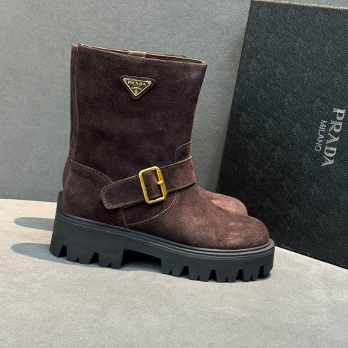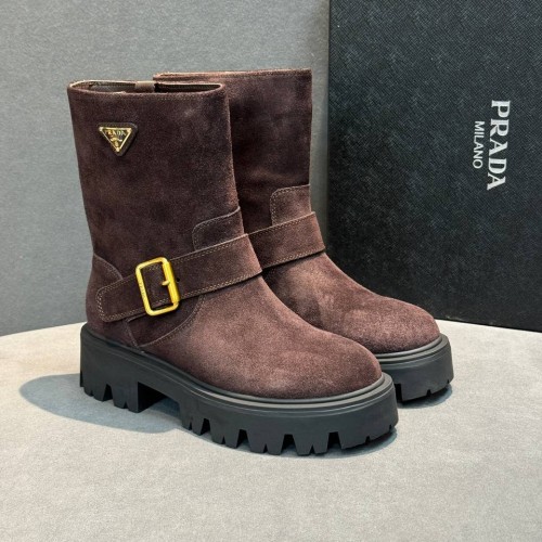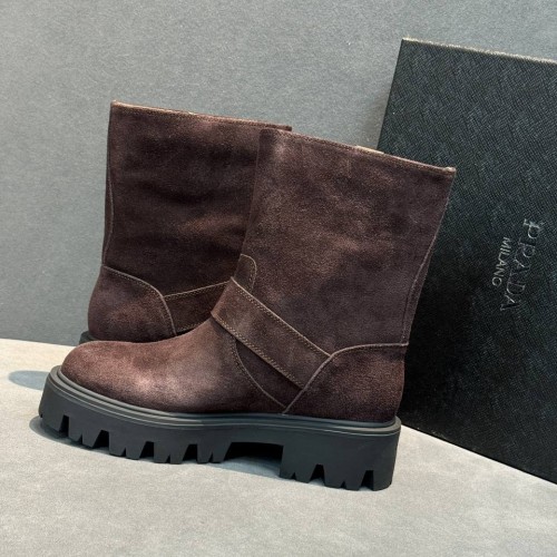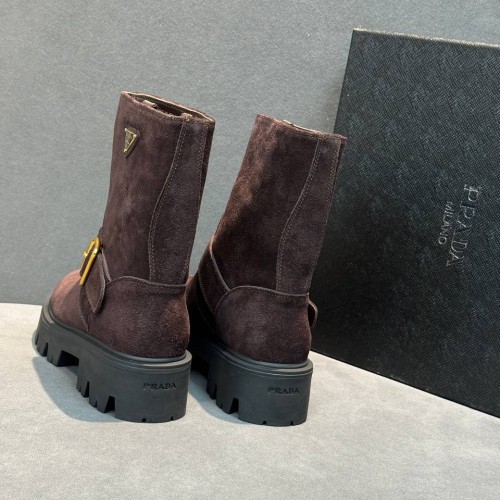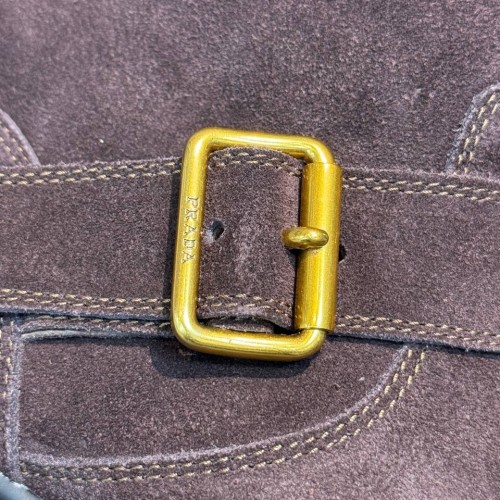 Коричневые женские ботинки Prada из натуральной замши. В этой модели дизайнеры увеличили акцентность за счет мягкой замши в цвете braun. Спокойная палитра цветов и лаконичные формы позволят легко интегрировать ботинки в разнообразные сочетания. В нашем интернет-магазине вы можете купить копии ботинок с доставкой по Москве и по всей России.