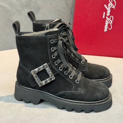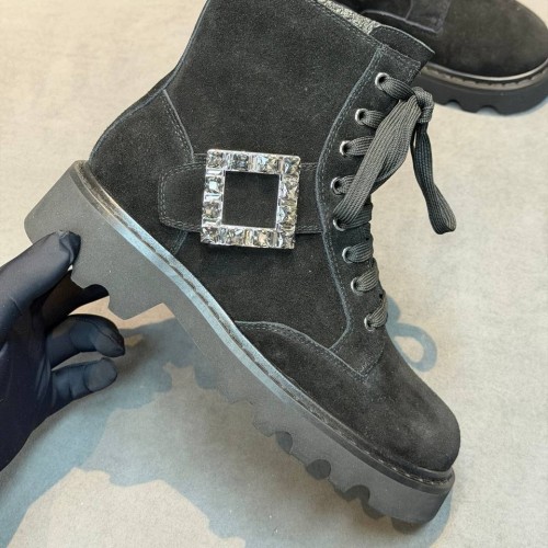 Черные ботинки Roger Vivier из натуральной замши. Лаконичные ботинки в городском стиле - самая беспроигрышная обувь для повседневных образов. Дизайн ботинок позволяет создавать множество новых луков. В нашем интернет-магазине вы можете купить копии ботинок с доставкой по Москве и по всей России.