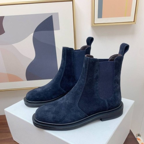 Синие женские ботинки The Row из натуральной замши. Стильное сочетание классических решений и выразительного силуэта. Овальная носочная часть и резинки по бокам делают челси яркими и женственными одновременно. В нашем интернет-магазине вы можете купить копии ботинок с доставкой по Москве и по всей России.