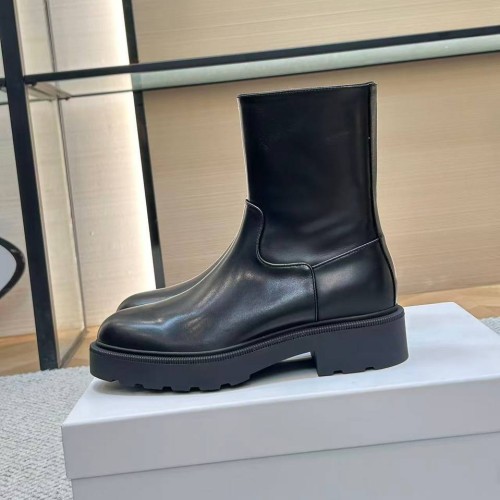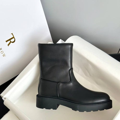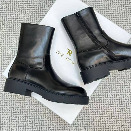 Черные женские ботинки The Row из натуральной кожи. Комфорт и элегантность сочетаются в этих ботинках. Модель отличается расслабленной формой: округлая носочная часть с строчкой, устойчивая подошва и лаконичный силуэт. Стильное и практичное решение для межсезонья. В нашем интернет-магазине вы можете купить копии ботинок с доставкой по Москве и по всей России.