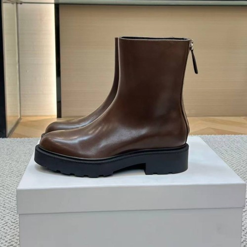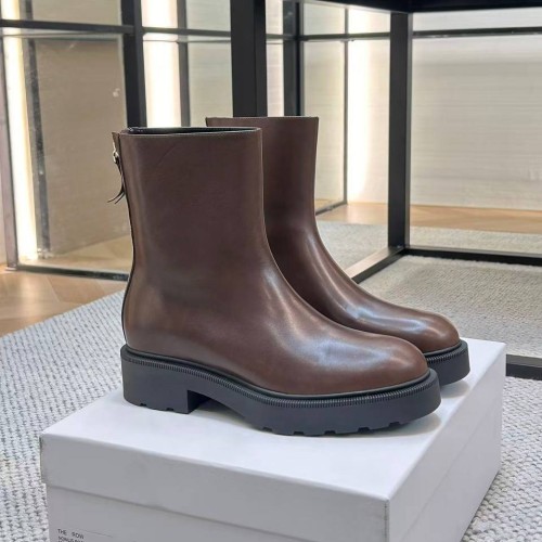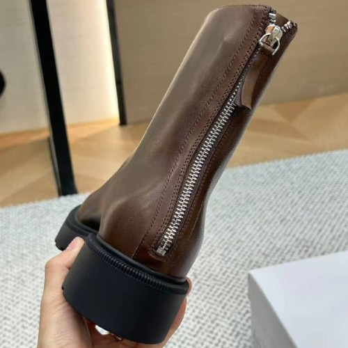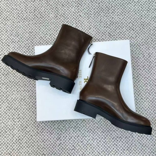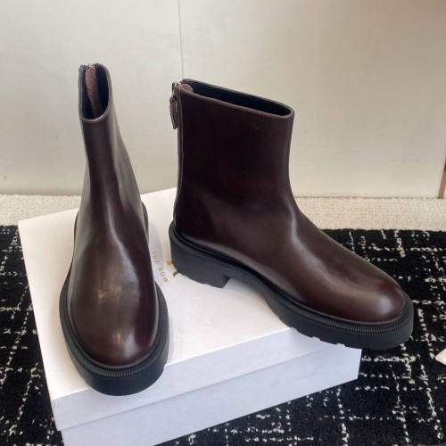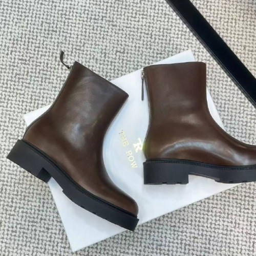 Коричневые женские ботинки The Row из натуральной кожи. Классическая форма с устойчивым каблуком делает модель удобной для повседневной носки. Удобная подошва и молния сзади позволяют ногам оставаться в полном длительном комфорте. В нашем интернет-магазине вы можете купить копии ботинок с доставкой по Москве и по всей России.
