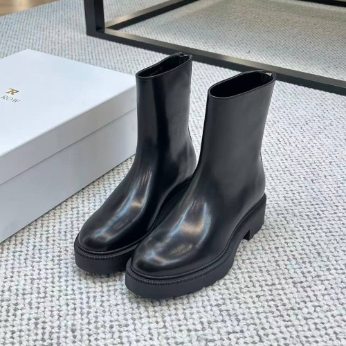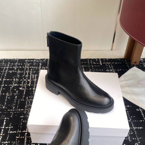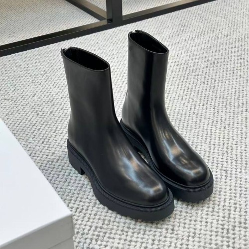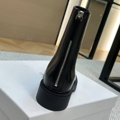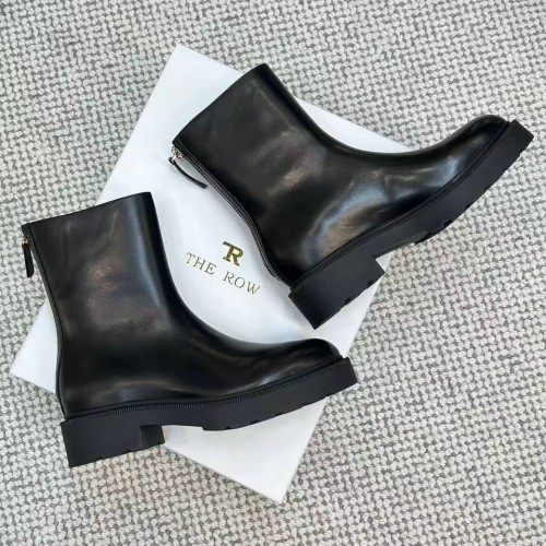Черные женские ботинки The Row из натуральной кожи. Уютные ботинки не только позволят вам собирать расслабленные городские образы и сочетания, но и надежно защитят в холода. Модель дополнена высокой подошвой и молнией сзади. В нашем интернет-магазине вы можете купить копии ботинок с доставкой по Москве и по всей России.