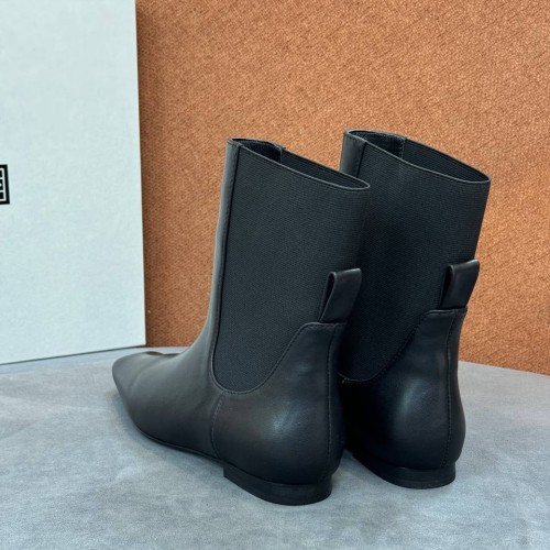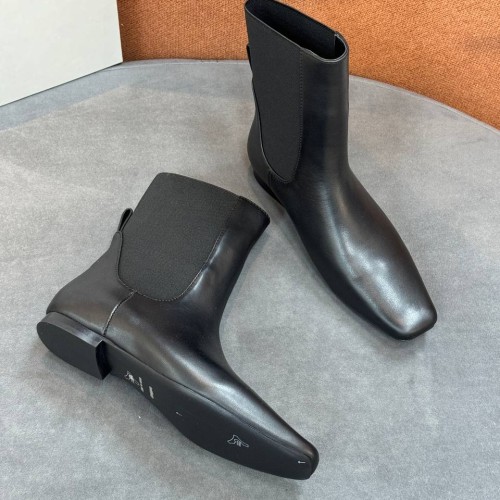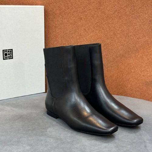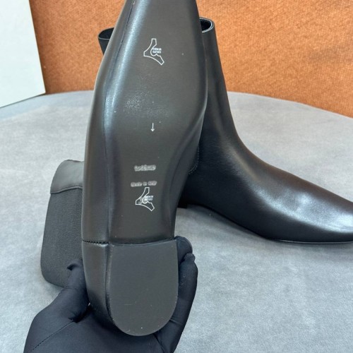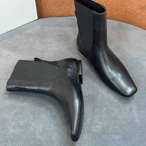 Черные ботинки Toteme из натуральной кожи. Новая модель челси - это совокупность лаконичности, свойственной ретро-моделям, и современных деталей. Пара выполнена из натуральной кожи черного цвета и дополнена резинками в тон. В нашем интернет-магазине вы можете купить копии ботинок с доставкой по Москве и по всей России.