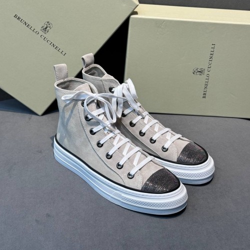 Бежевые высокие кеды Brunello Cucinelli из натуральной замши. Кеды из новой коллекции с цепочкой мониль внесут завершающий штрих в ваш спортивный образ. Контрастная белая подошва придает паре динамичности. В нашем интернет-магазине вы можете купить копии кед с доставкой по Москве и по всей России.
