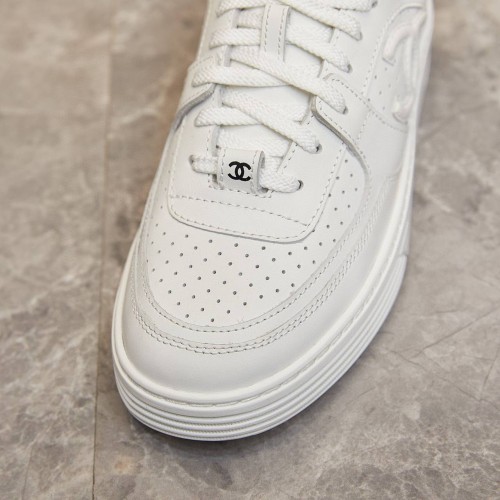 Белые женские кеды Chanel из натуральной кожи. Безупречная база и универсальный вариант для тех, кто всегда в движении. Удобная шнуровка позволяет быстро и легко снимать обувь. В нашем интернет-магазине вы можете купить копии кед с доставкой по Москве и по всей России.