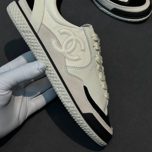 Белые кеды Chanel из натуральной кожи со вставками из лакированной кожи. Модель создана с помощью сочетания материалов. Подошва обеспечивает амортизацию во время ходьбы. Светлая световая гамма и продуманный дизайн делают кеды незаменимым элементом комфортных повседневных образов. В нашем интернет-магазине вы можете купить копии кед с доставкой по Москве и по всей России.